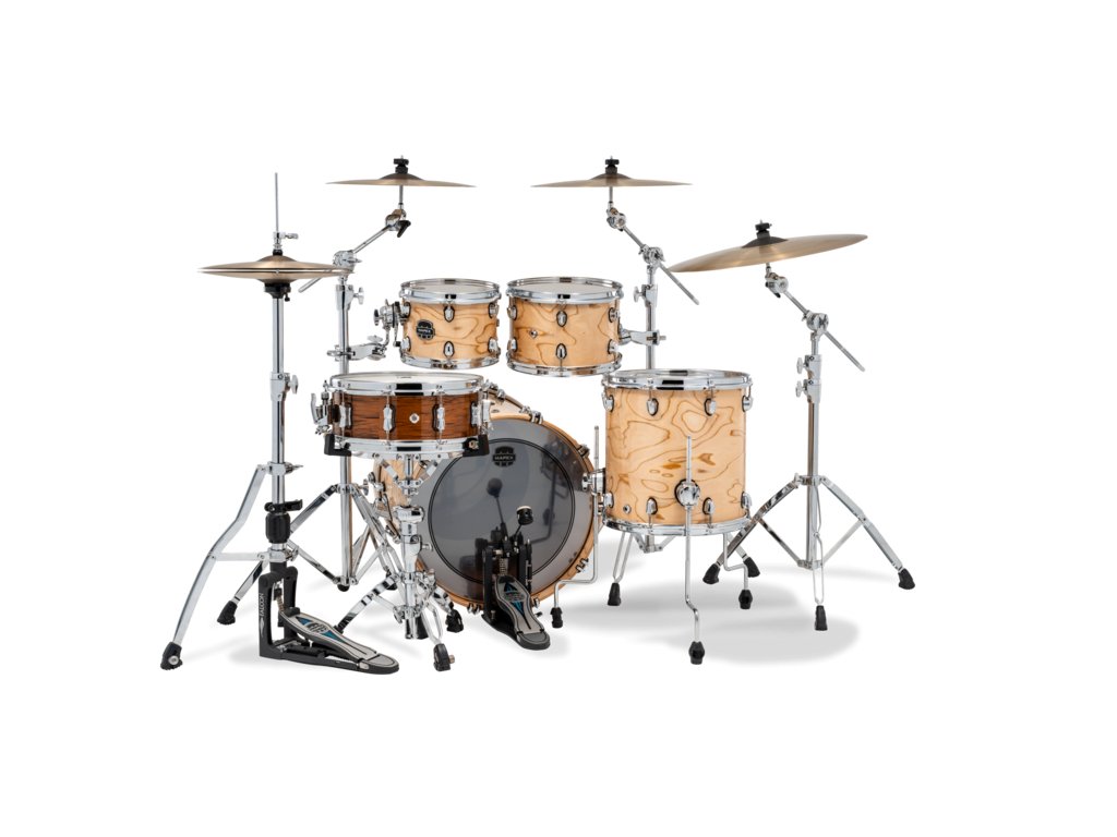 Korpusy: vnitřní vrstvy javor / prostřední vrstvy ořechu / vnější vrstvy břízy - celkem tedy 6 vrstev / 5,8mm (tomy 8-10"), 6 vrstev / 6,5mm ( tomy a kotle 12-16"), 8 vrstev / 8,2mm (kotle a velké bubny 18-24")