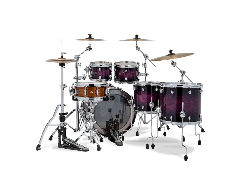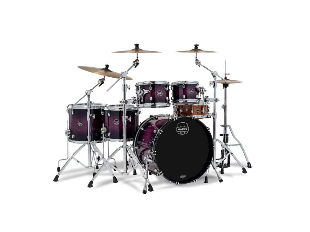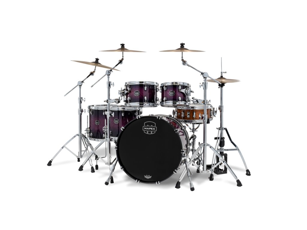 javor/ořech, 5,1mm tomy a snare (6 vrstev), 7,5mm bas. bubny (8 vrstev)